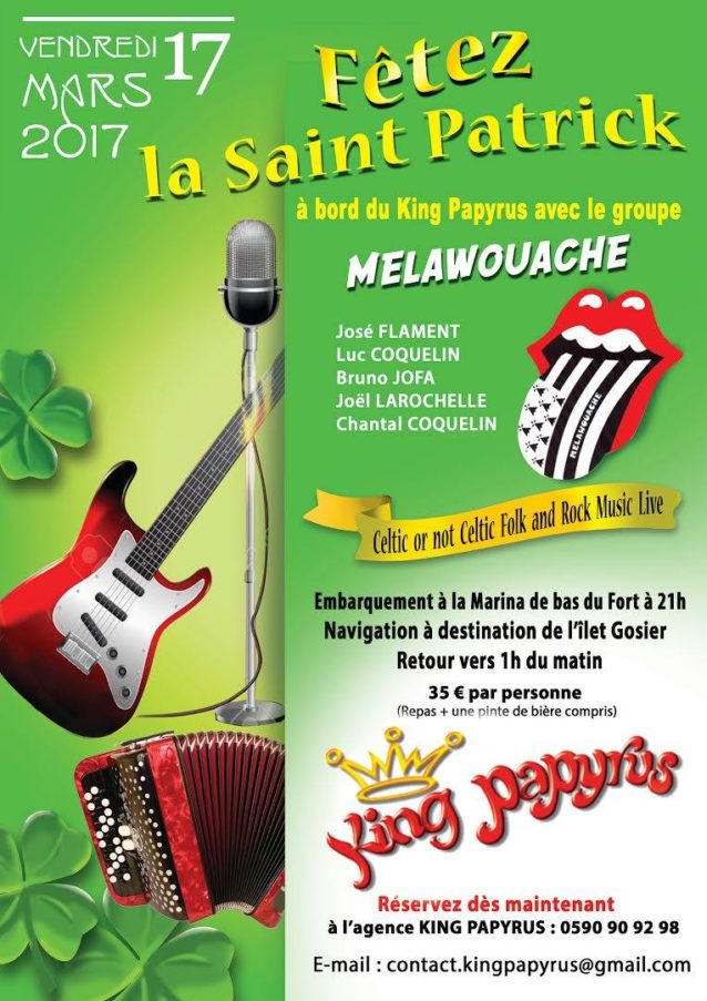 Un concert live avec Melawouache aura lieu sur le King Papyrus à Pointe-à-Pitre à l’occasion de la Saint-Patrick le vendredi 17 mars 2017