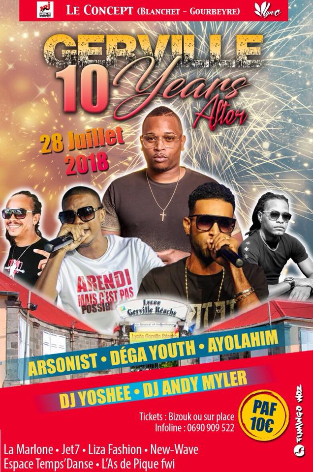GERVILLE 10 YEARS AFTER aura lieu au club Le Concept à Gourbeyre, le samedi 28 juillet 2018