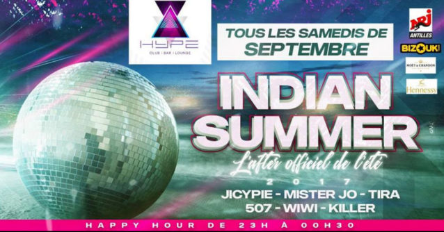 Une soire Indian Summer aura lieu tous les samedis soirs de septembre au bar Le Hype à Gosier