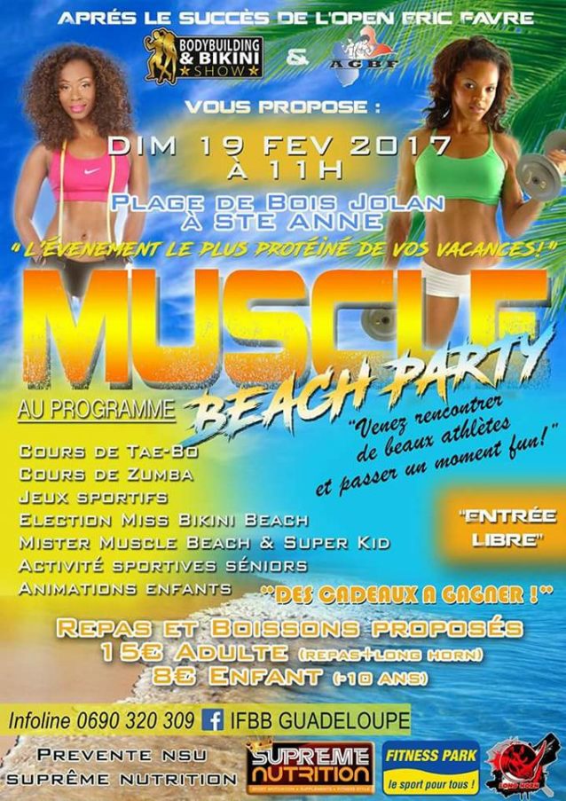 Muscle Beach Party le dimanche 19 février 2017 à partir de 11h sur la plage de Bois-Jolan à Sainte-Anne.